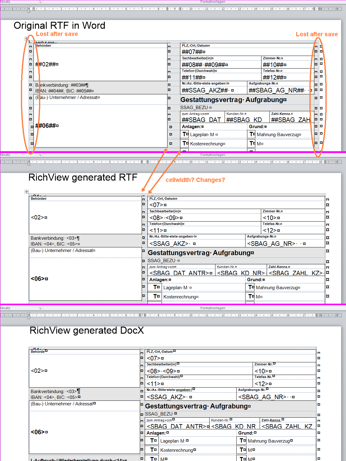 I have tried to the the global variable and changed the code location you showed. This gives another result, but still wrong and different between rtf /docx after loading again in Word. Do I miss something, there are other properties which influence this behavior?