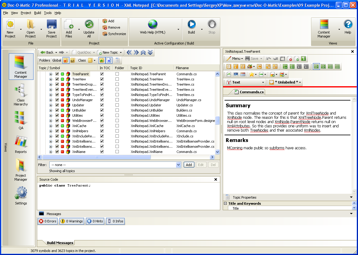 - Doc-O-Matic helps you manage your source code by providing a class hierarchy visualization tool, a flexible report feature and a graphical documentation QA tool.