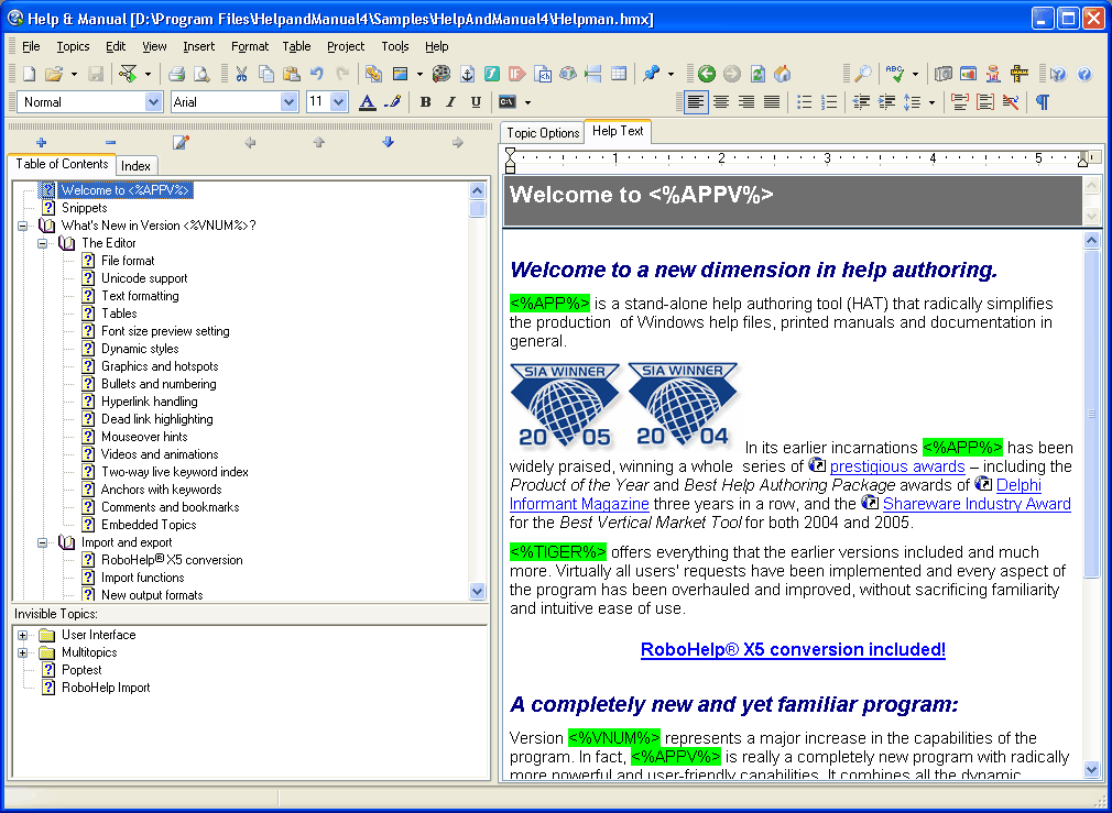 All our manuals for TRichView, RichViewActions and ScaleRichView, including online manual were created in Help & Manual.