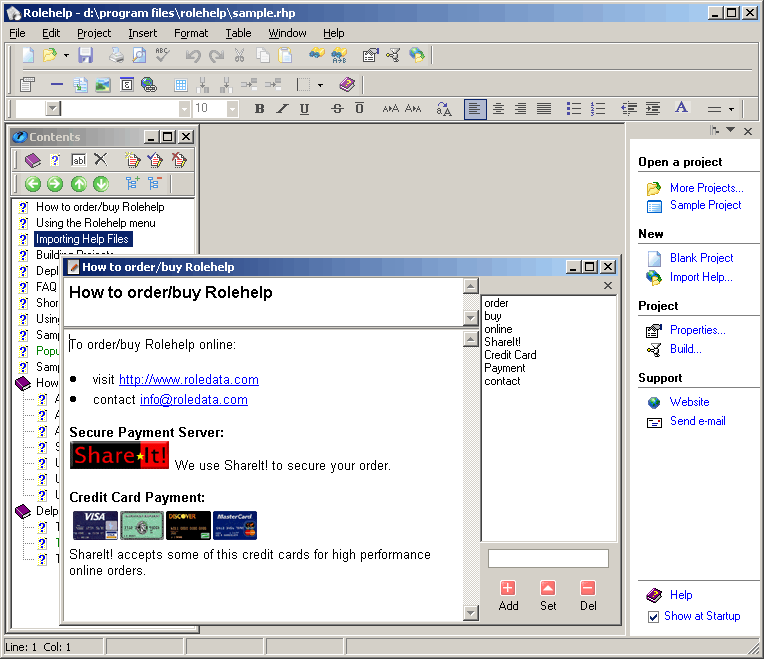 Rolehelp is a help authoring tool to create 7 types of help and documents (manuals) from one single source: