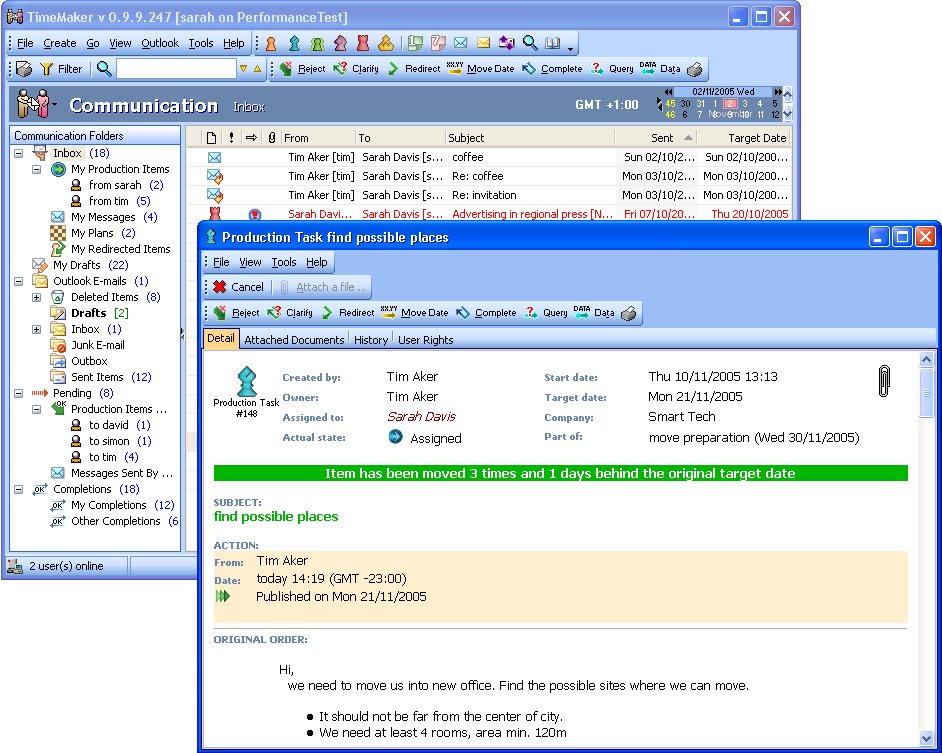 TimeMaker is a company tool for communication, organization of production flows and planning.