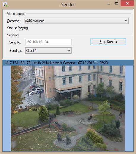 At the bottom of the main window you can see statistics and charts for data received from IP camera(s), data sent by sender, data received by receiver.