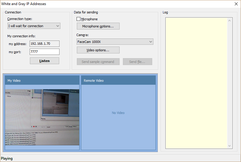 Video will be sent via the network to this application itself, and received video will be displayed at the right side