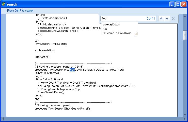 TSRVEdit and TSRVComboBox can display a list of suggestions. Unlike a combo box drop-down list, items in this list are generated dynamically and depend on the text in the control.