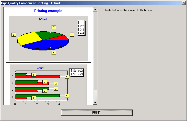 This plugin performs high quality printing of TChart components inserted in a RichView editor or viewer.