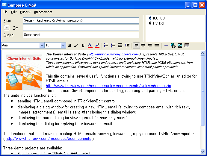 - Compiled demo projects (using TRichView editor, using ScaleRichView editor, using TRichViewEditor and Addict4 spell checker): included in TRichView demo projects.
