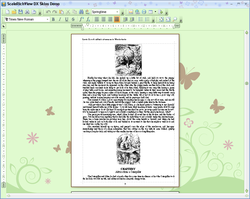 The package includes TSRVDxSkinAdapter component allowing to use ExpressSkins™ in ScaleRichView editor.