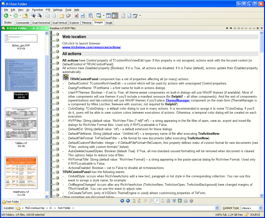 Set of actions for creating user interfaces for RichViewEdit. Includes predefined dialogs and several components. Supports Windows themes and VCL visual styles.