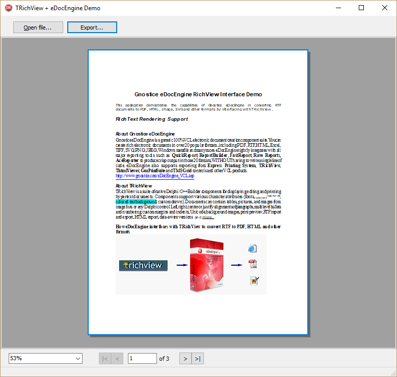 - Additional info: registered TRichView users can apply 15% discount when ordering Gnostice eDocEngine