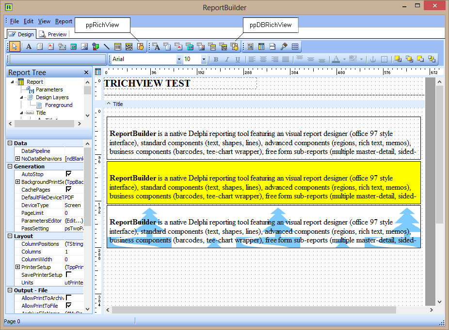 Visit TRichView wrapper for ReportBuilder Page for additional information.